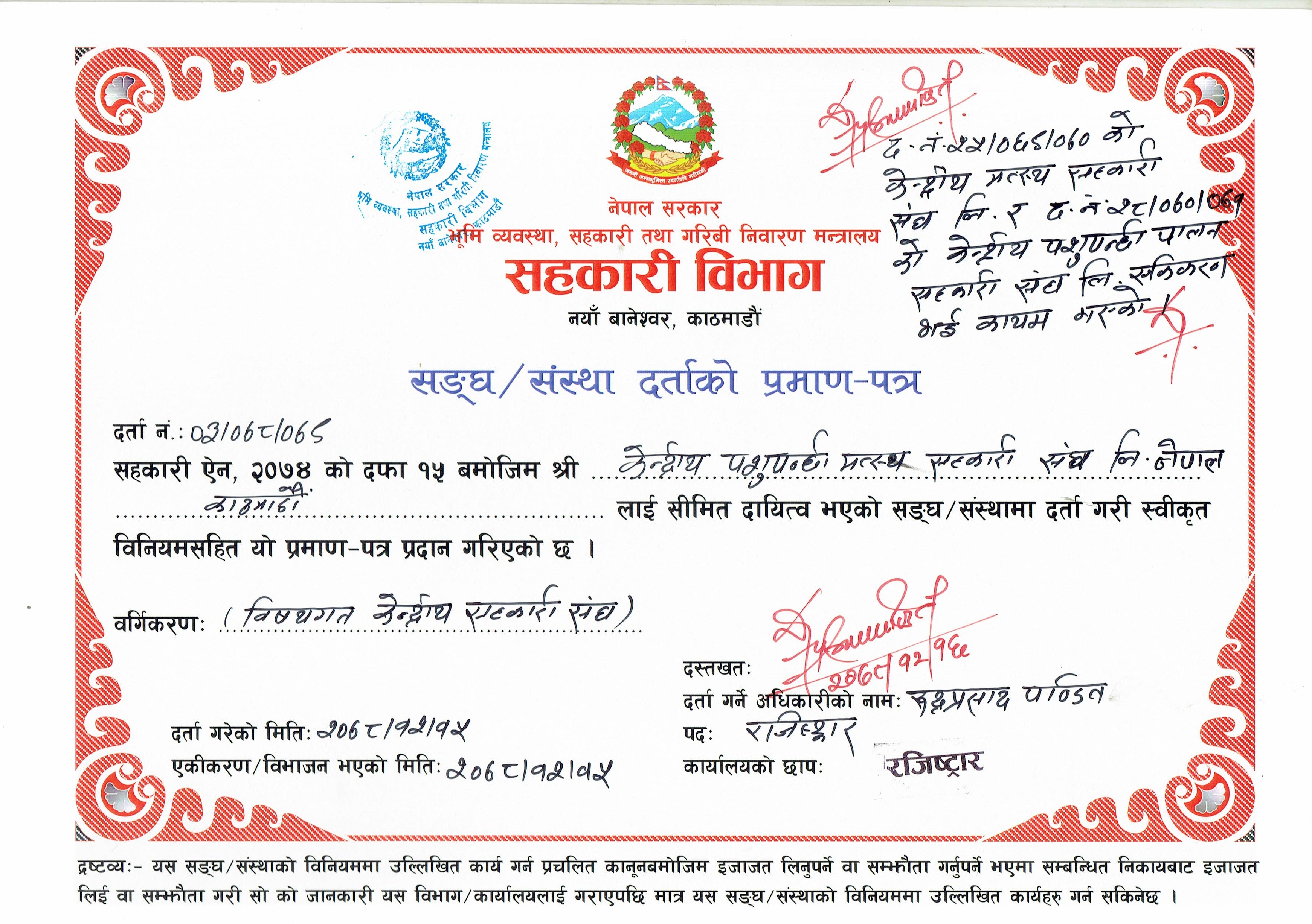 १. संघ दर्ता प्रमाणपत्र